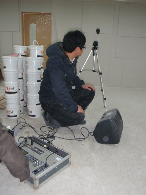 - 건축구조물의 차음, 흡음 피구조물의 벽체, 천정, 바닥, 아파트, 음악실, 스튜디오, 영화관, 체육관, 학교